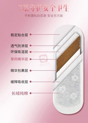 7层守护安全卫生:雪莲贴共有7层,长绒纯棉层温和舒适,不刺激私处肌肤。缓释吸收层带来缓冲舒适体验,多一层绵柔保护。精华包裹层使内裤保持干净清爽。草药精华层蕴含雪莲等多种名贵中草药。环保吸湿层迅速吸湿,保持干爽。透气防渗层采用优质透气底膜,安全无污染。稳定贴合层使用优质进口黏胶,稳定不易掉。