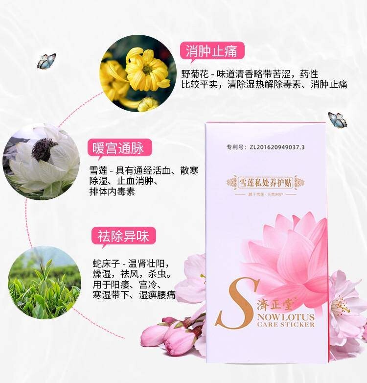 暖宫通脉:许多女生都有体寒的困扰,痛经、经量少等问题难以解决,雪莲贴中的雪莲花提取物具有散寒除湿的作用,并调理宫寒,活血化瘀、缓解痛经等症状。